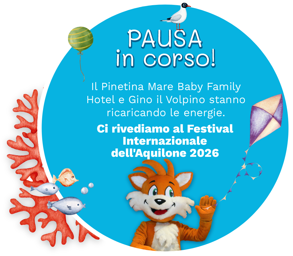 Sono la mascotte dell’Hotel Pinetina Mare e ti do il benvenuto all'Hotel Pinetina Mare.